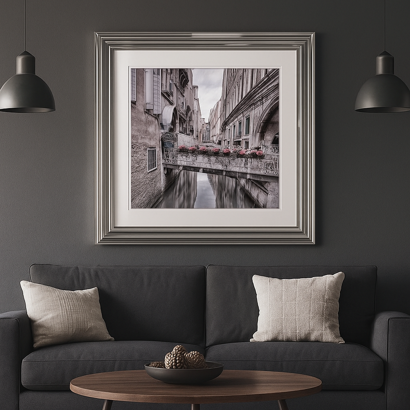 Print of Venice in a Distressed Wooden Frame 75 x 75 cm