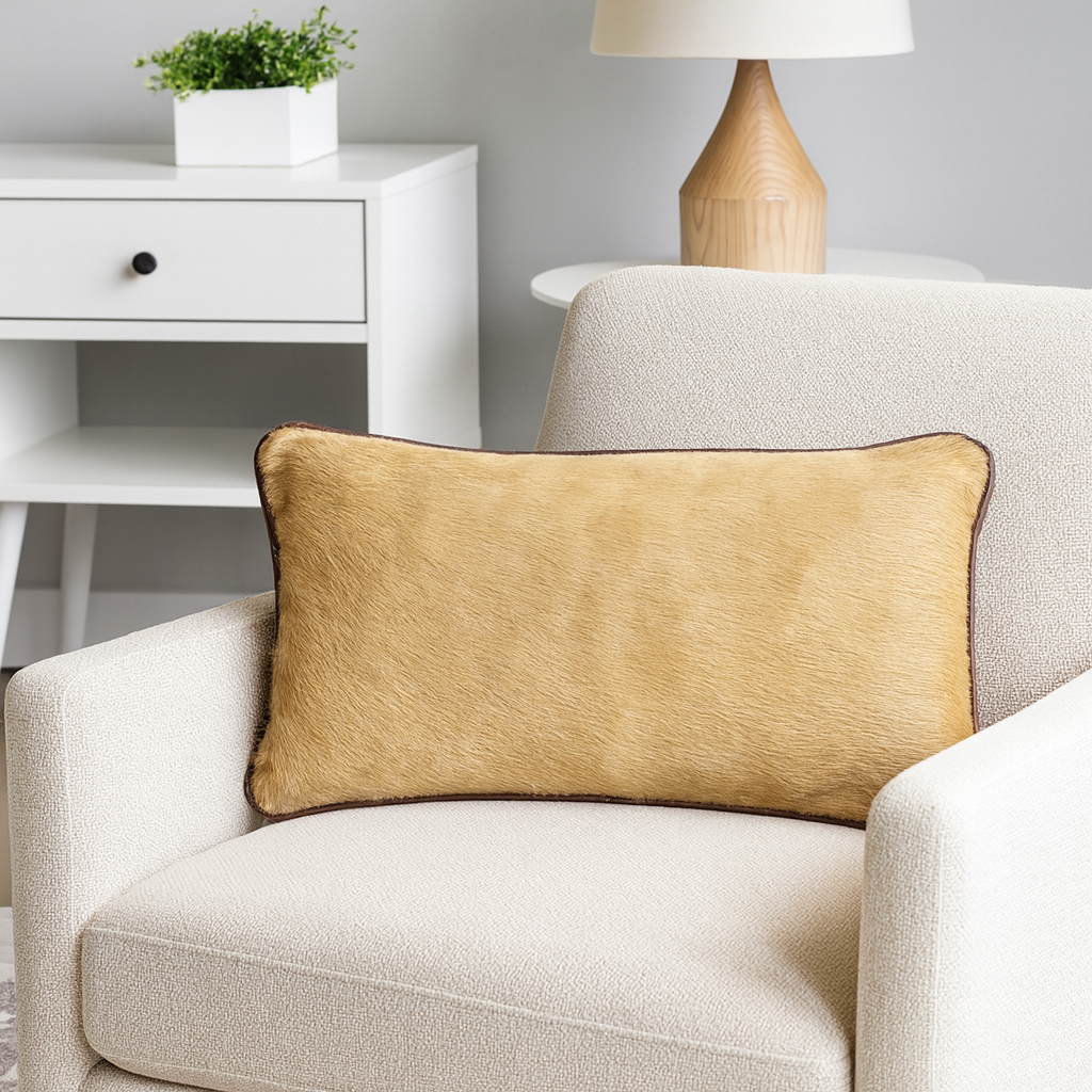 Cow hide leather in soft golden hues.