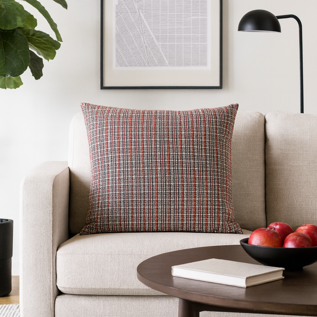 Seduisant is a captivating semi-plain satin fabric, evoking a digital mosaic with its pixel-like design. It is rich and alluring, perfect for adding a touch of modern luxury to curtains, cushions, and upholstery. Camengo Seduisant Fabric in colour Rouge