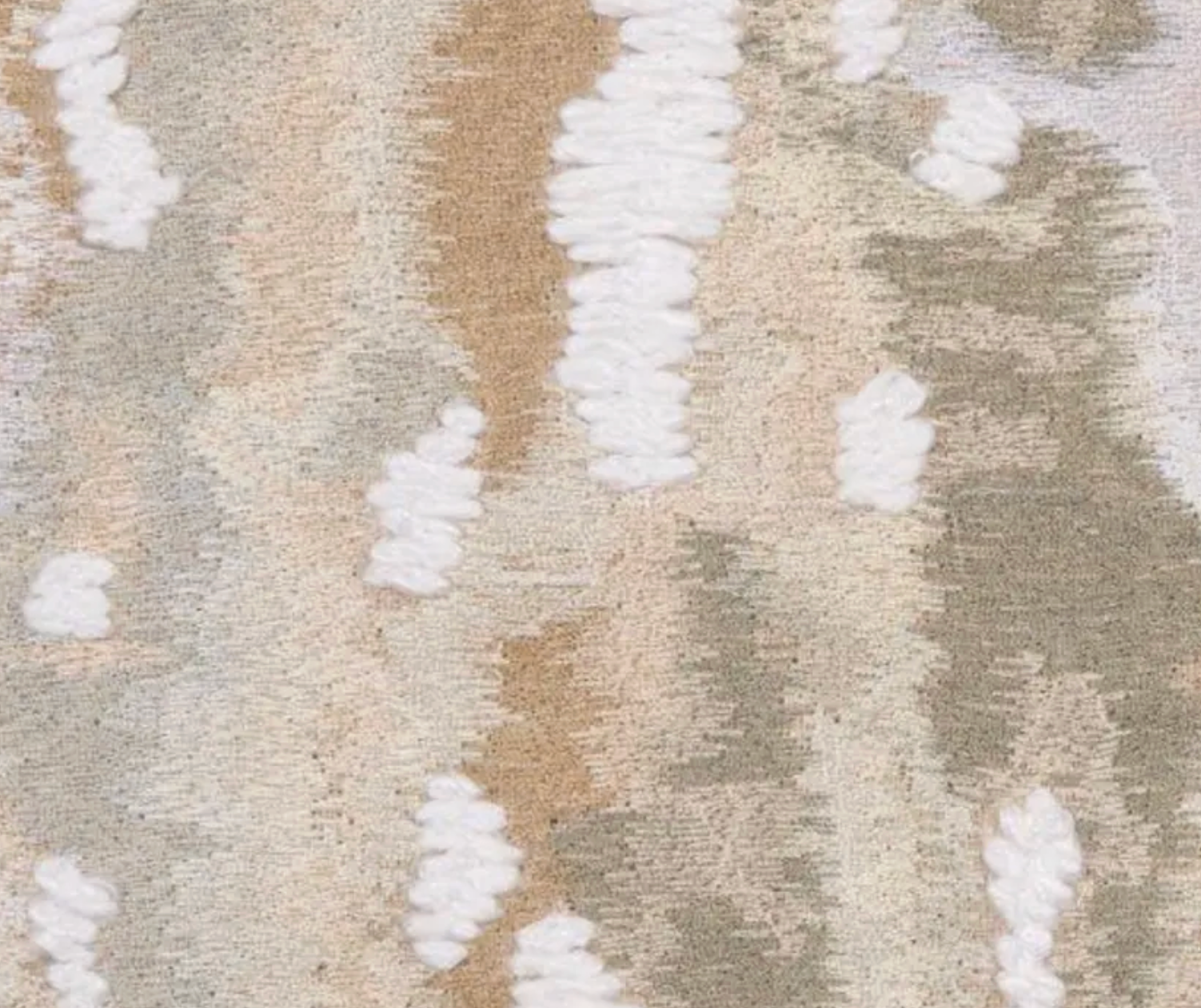 Though at first it may appear to be wild abstraction, this full-coverage embroidery took inspiration from the organic patterning of tree bark. Nine colors of gleaming viscose yarn are used to define each motif and create the overall design. A custom and thick accent yarn is then stitched by hand to enhance both dimension and texture. An artisanal masterwork.