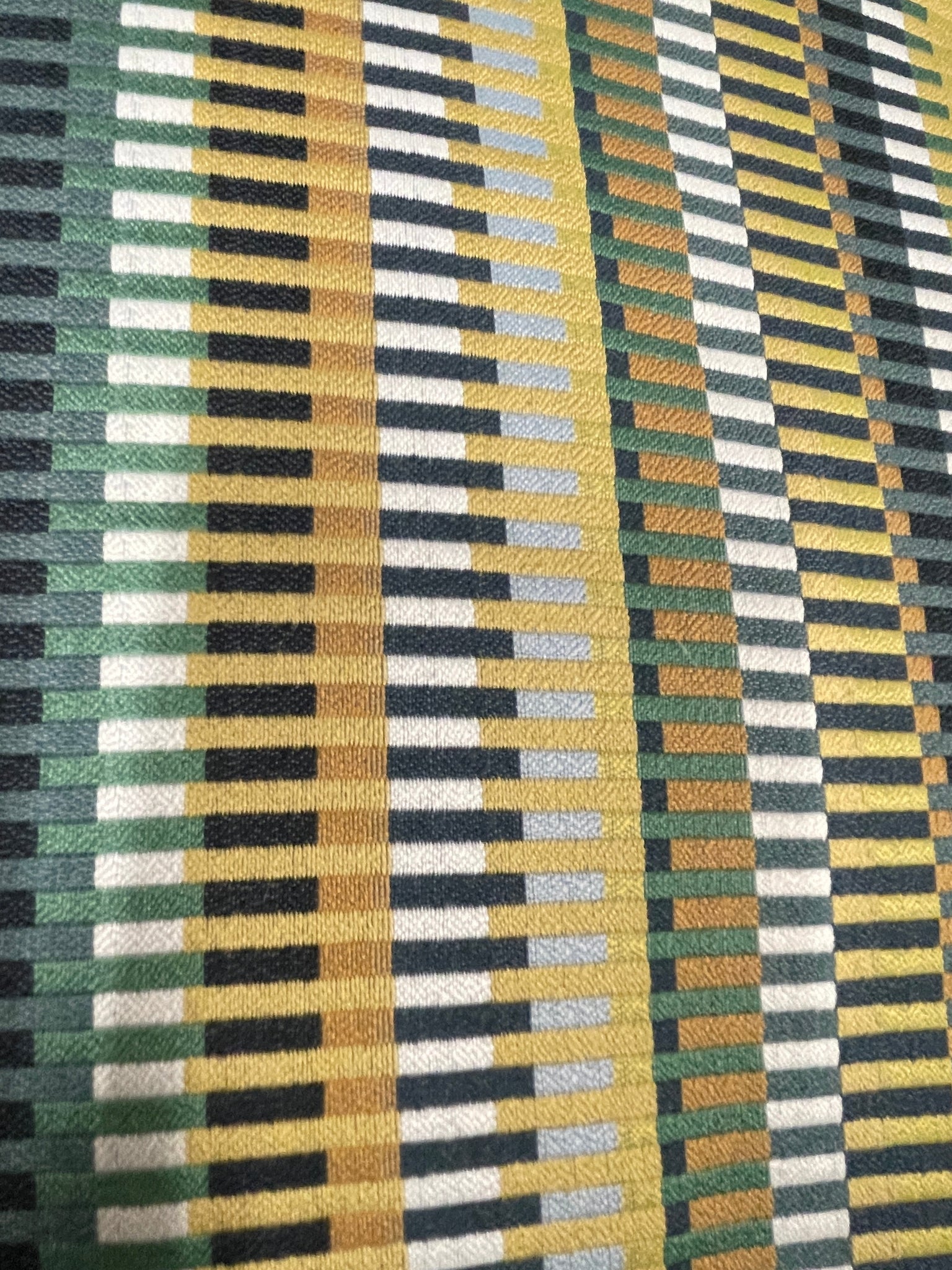 Riot by Pollack is a geometric upholstery fabric with a wool-like feel. With its bold patterns and luxurious texture, Color Riot adds a touch of visual interest and comfort to any furniture piece