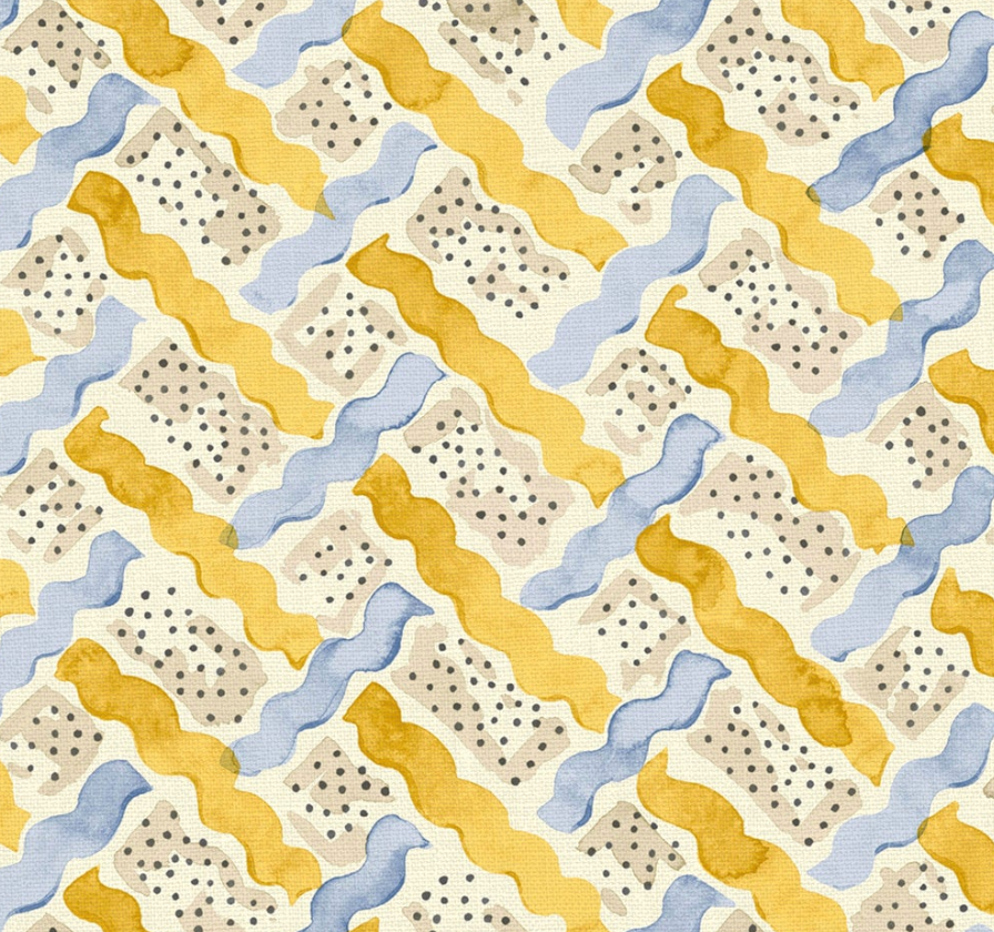 Fresh and fun, a contemporary lattice design with wavy lines and a bold colour palette. Presented on pure linen fabric.